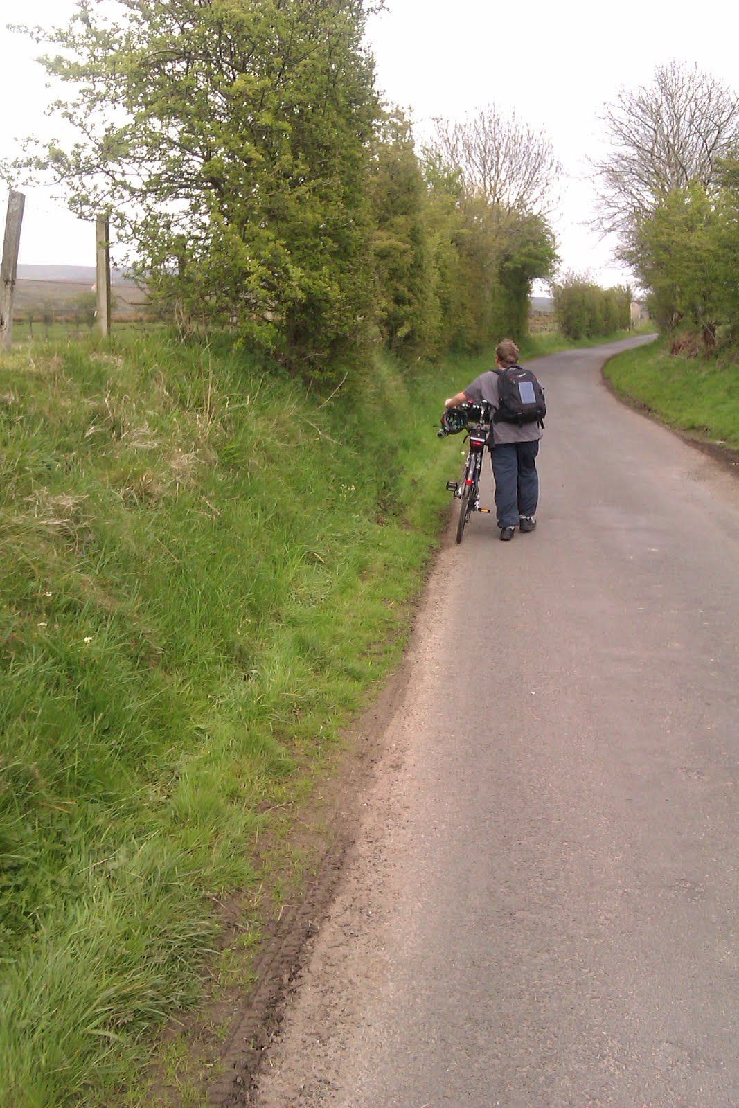 The next challenge was the first big hill, Hartside. The foothills were daunting enough and some bits were steep enough to warrant walking. We came to the junction that said turn right for offroad and straight on for onroad. Our GPS route said right, but having read the guide book we were quite clear that straight on was the only sensible option.
